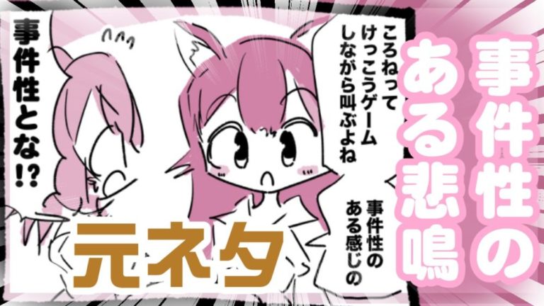 こちらの配信で、ミニゲーム中に戌神ころねちゃんが非常に切迫した叫び声をあげていたため、大神ミオちゃんが「事件性があるんよ…」とツッコミを入れたことが発祥です。